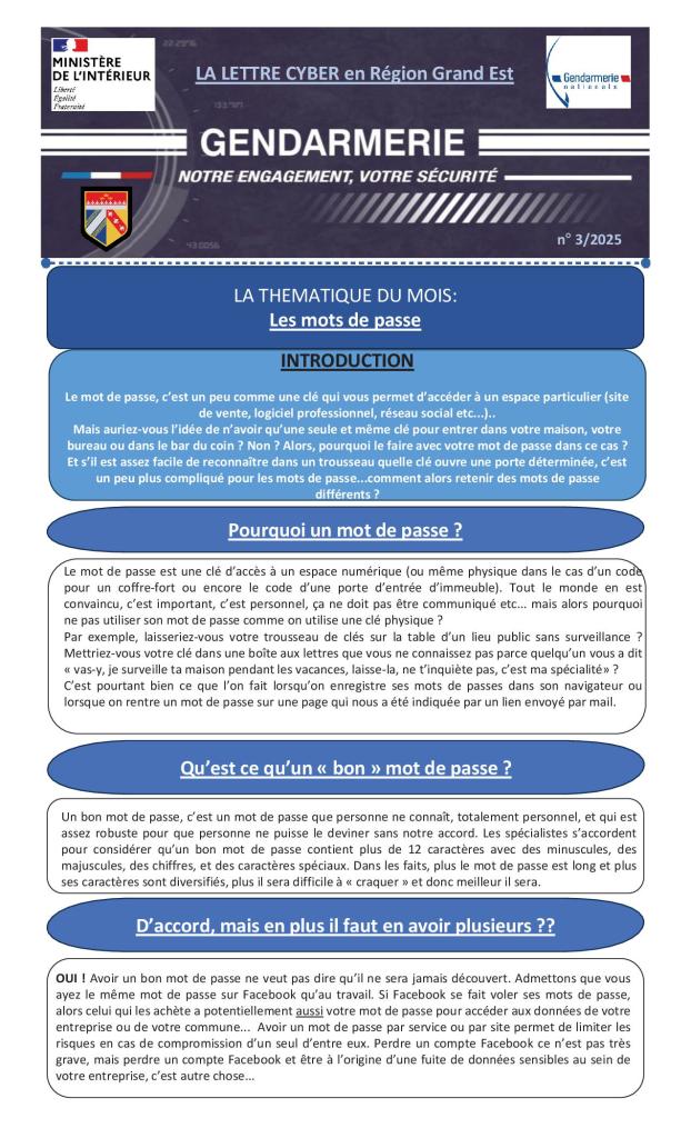 La LETTRE CYBER n° 3/2025 : Les mots de passe
