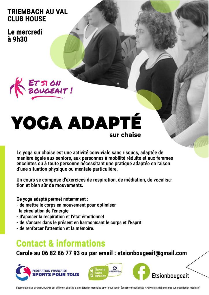 - YOGA ADAPTÉ SUR CHAISE : le mercredi de 9h30 à 10h30