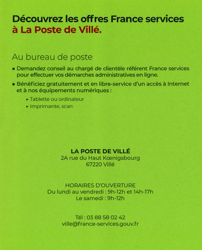 Découvrez les offres FRANCE SERVICES à la Poste de Villé.