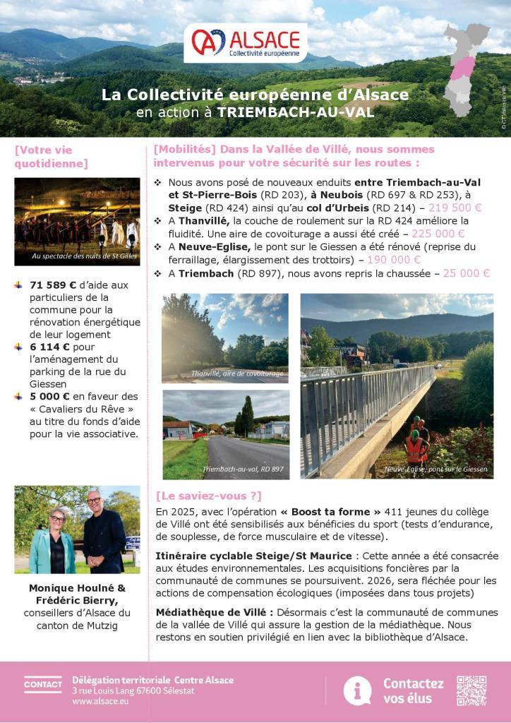Aussi, Monique Houlné et Frédéric Bierry, conseillers d’Alsace du canton de Mutzig, ont souhaité communiquer sur leur travail au quotidien.