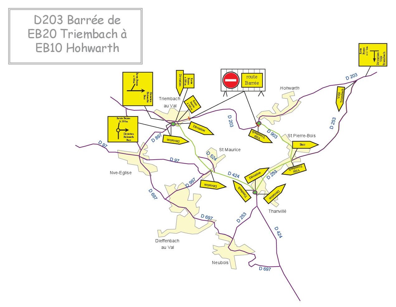 Communiqué de la Collectivité européenne d’Alsace – du Lundi 16 Juin 2025 et jusqu’au Vendredi 20 Juin 2025 inclus, sur la D203 du PR 000 + 0761 au PR 002 + 0417, dans les deux sens de circulation, sur les communes de Saint-Maurice, de Saint-Pierre-Bois et de Triembach-au-Val, disposition applicable de 07h00 à 19h00.